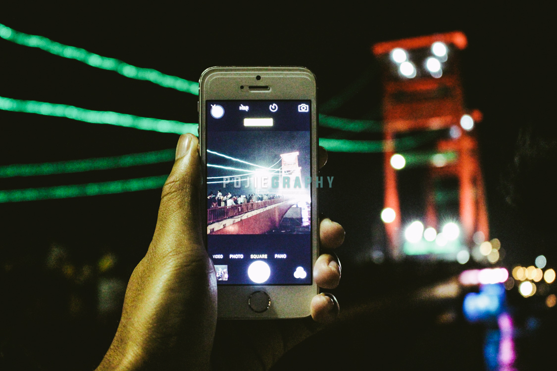 Gara-gara semangat nak tengok gerhana matahari penuh, kami semua gagahkan diri bangun awal dan tiba di Jambatan Ampera seawal jam 5 pagi. Bila sampai dekat sini, aku terkesima sebentar sebab tempat ini sudah dibanjiri ramai orang (like super ramai).