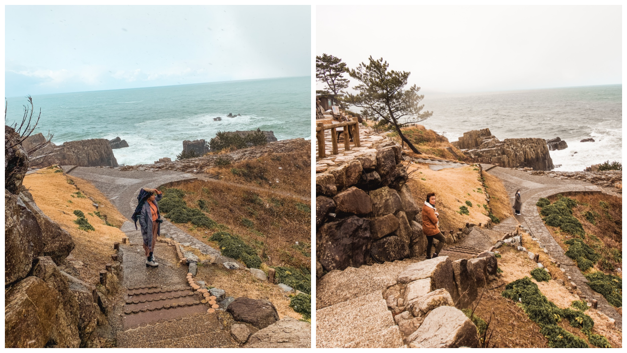 Tanpa melengahkan masa, kitaorang mulakan perjalanan ke tarikan pertama iaitu Tojinbo. Batu-batu kat sini terbentuk dari pukulan ombak sekaligus menjadikan ia sebagai spot menarik untuk bergambar.