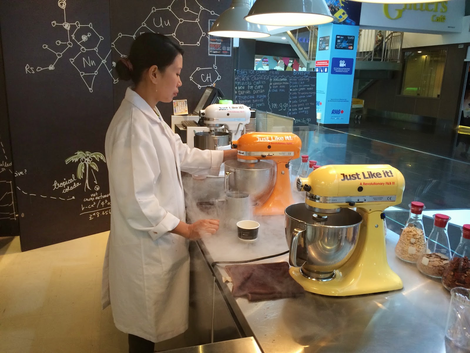 While waiting to collect the tickets, my eyes literally attracted to this one particular and small cafe with the smoky effects they made on the mixer. From my distance of view, i can tell that its an ice cream cafe. But just couldn’t think on that smoky thingy.