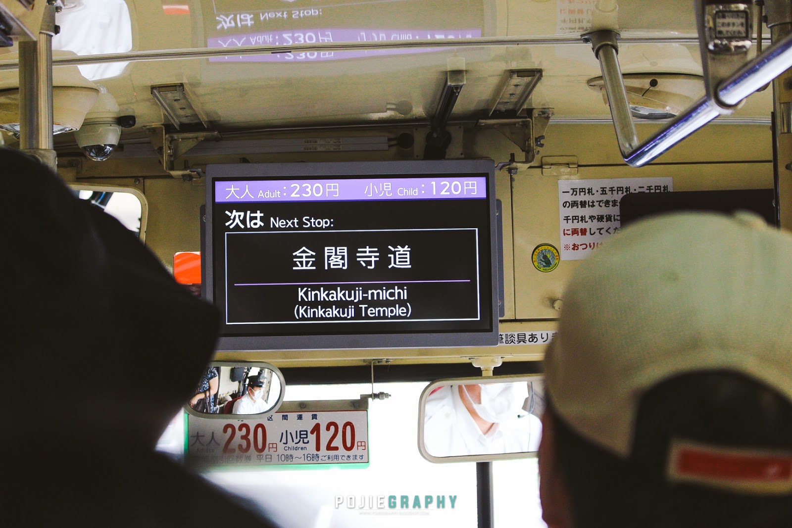 Tambang bas dari Emmachi Station ke Kinkaku-Ji Stop: Y230 (Dewasa) dan Y120 (Kanak-kanak).