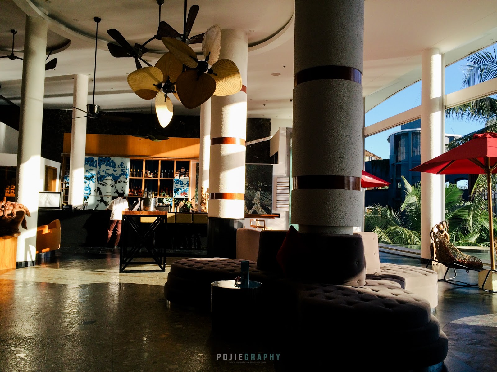 Sejurus melangkah ke kawasan lobi utama hotel ini, aku berasa sangat teruja melihat deko sekitar main lobi. Pemandangan laut, kolam renang dan juga sunset/sunrise – semuanya anda boleh lihat dari lobi utama hotel ini.