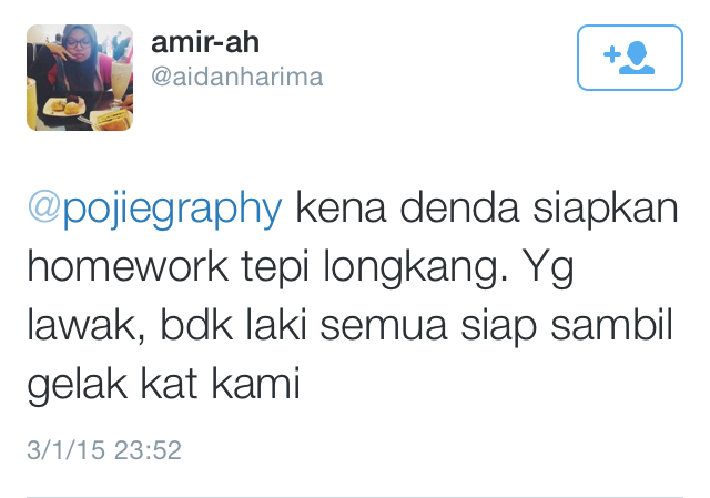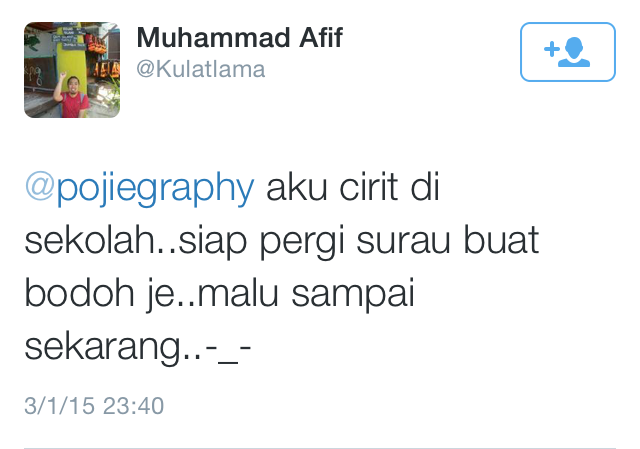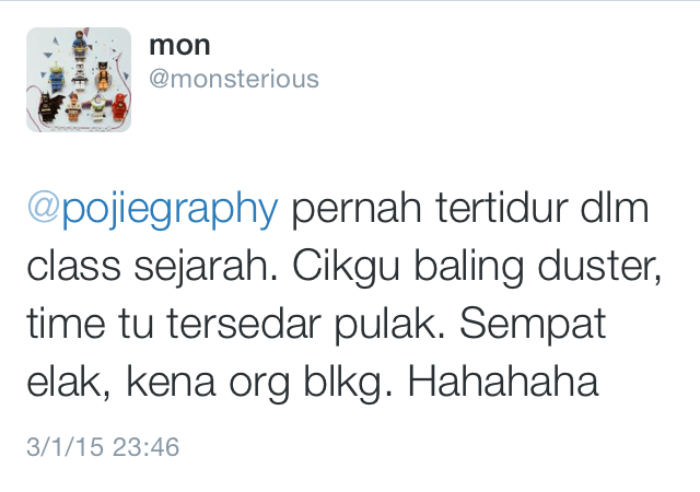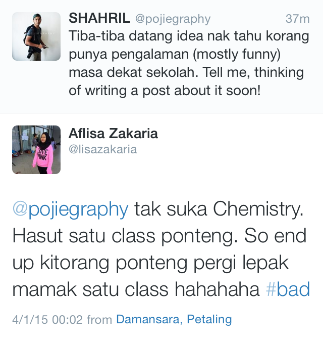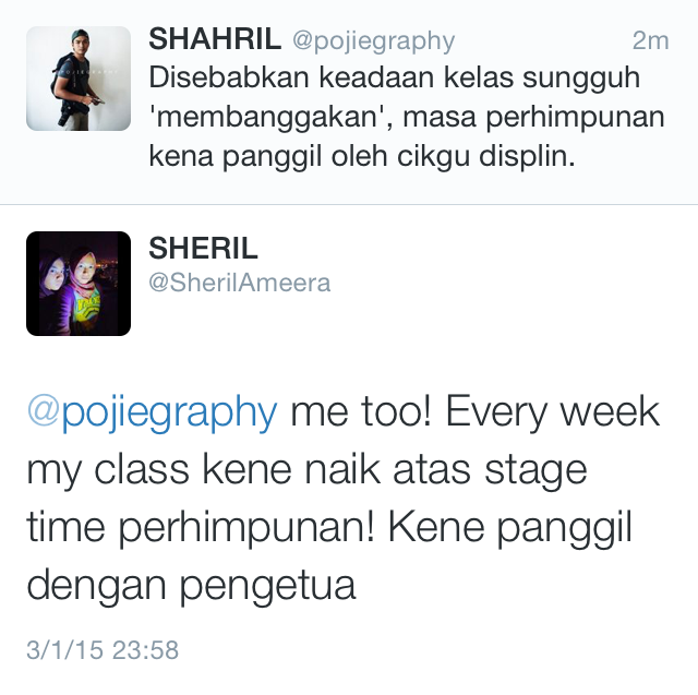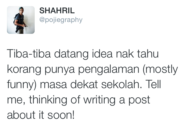 As promised, I’ll share the stories from some of my friends from Twitter. Indeed, diorang memang buat aku lupa tentang peritnya nak study untuk exam ni. Sebelum tu, tengok la dulu cerita mereka masing-masing lepas tu barulah aku share cerita yang aku tak boleh lupakan masa zaman persekolahan.