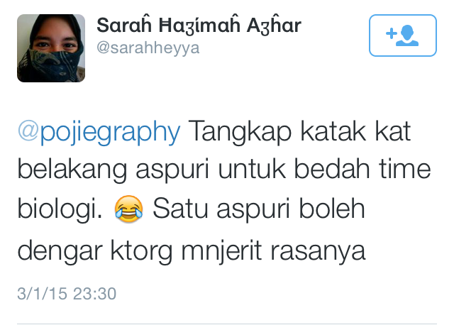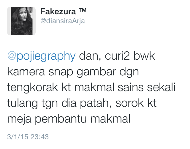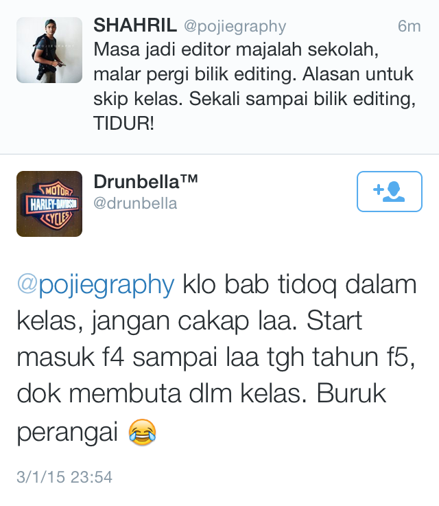 Hahaha! Keji weh tweet bulu tu. Kahkah!
