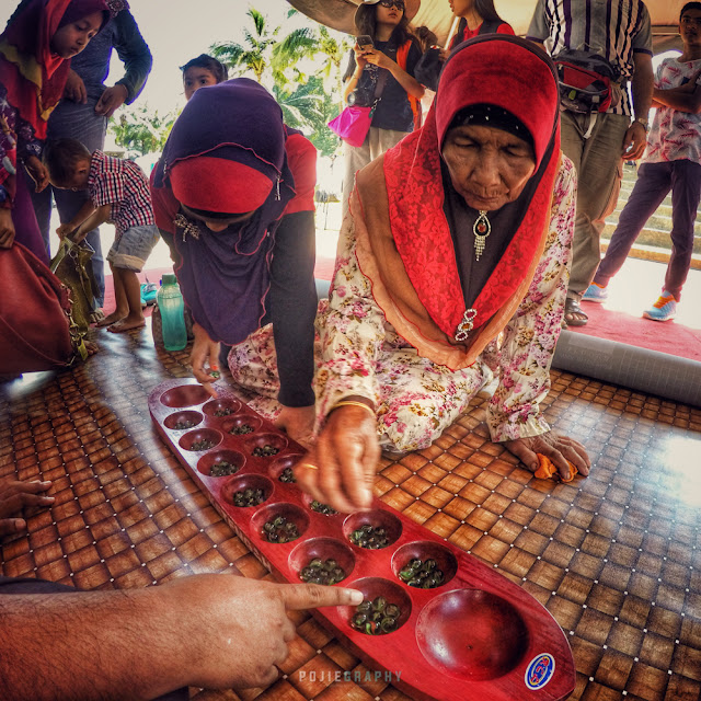 | Media people had their chance to try playing Congkak, one of the traditional game |