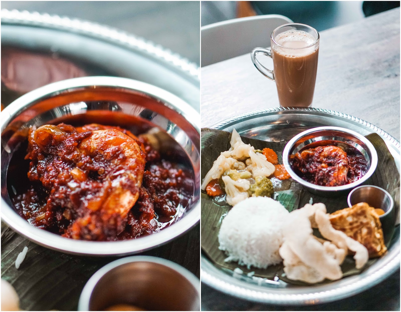 – Dihidangkan dengan nasi putih, tiger prawn masak sambal dan sayur-sayuran