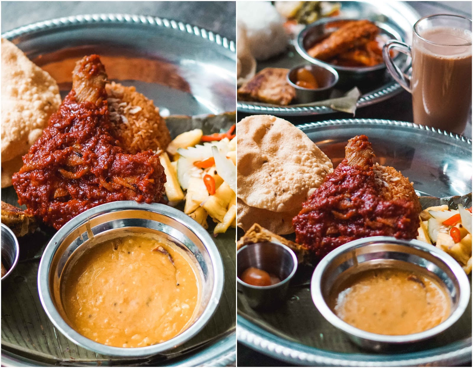– Dihidangkan dengan nasi tomato ayam masak merah, sayur dalca, pickles dan papadom