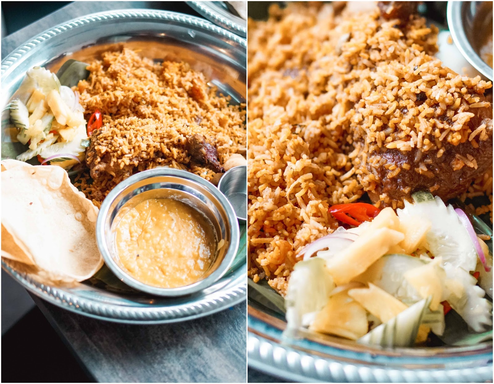 – Dihidangkan dengan nasi briyani ayam, sayur dalca, pickles, telur dan papadom