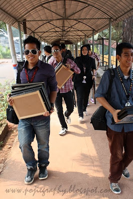 Masing-masing membawa perkakas (hasil karya para pelajar fotografi untuk menjadi tontonan para adik-adik), tapi aku bawak camera aku sendiri je lah. Konon-konon nak amik gambar dorang, padahal aku malas nak tolong dorang. Haha.