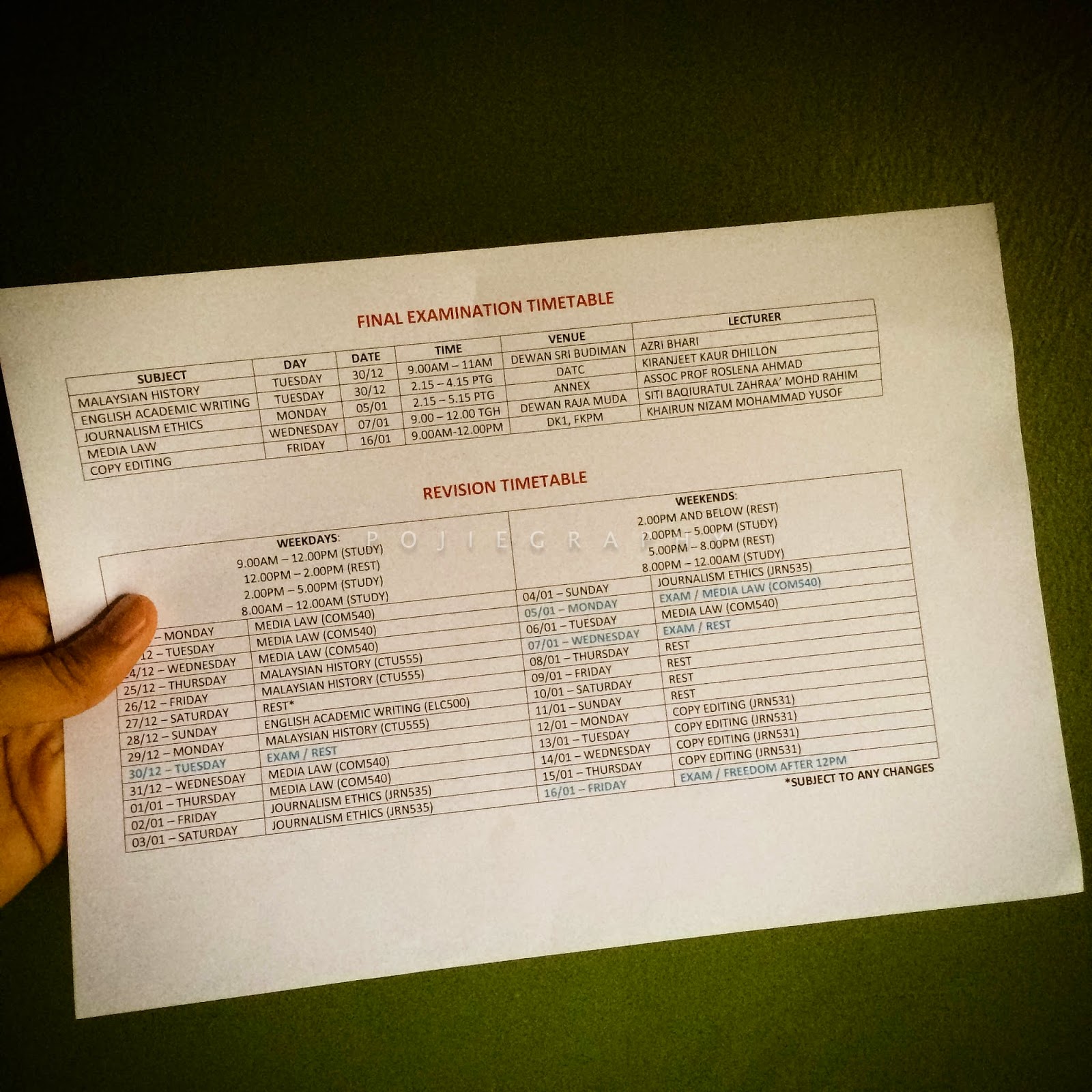 PERSONAL TIMETABLE (REVISION)